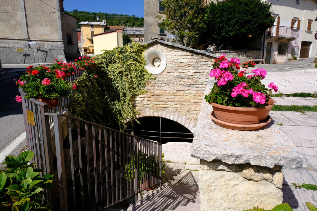 Particularly noteworthy are the fountains in the lower part of the village. Just below the apse of the Church of San Marziale is the drinking water fountain: the spring lies further down and can be reached by descending a stone staircase. A container is provided here, designed to fill buckets without having to immerse them directly into the spring.
