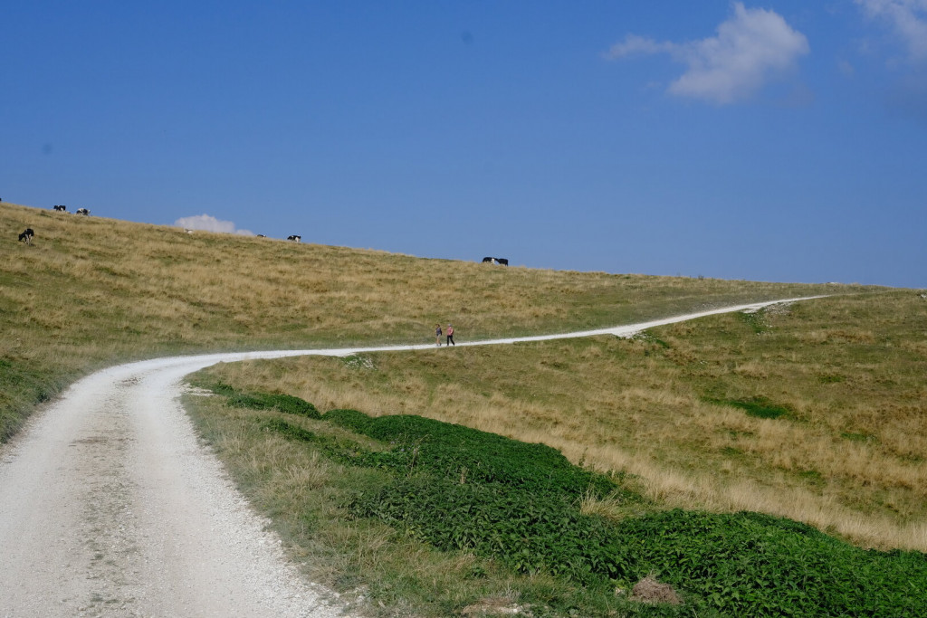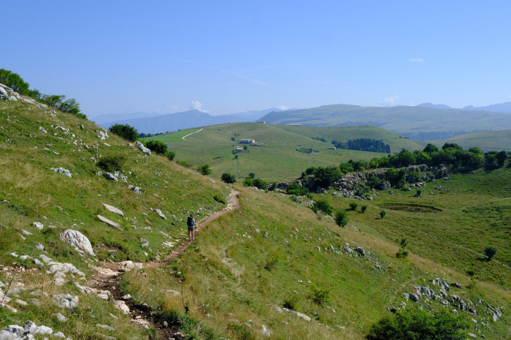 La discesa segue lo stesso sentiero fino a una valletta erbosa; superato un muretto a secco, sulla sinistra si nota l’ingresso della Grotta del Ciabattino, cavità orizzontale che, in inverno, si arricchisce di suggestive concrezioni di ghiaccio. Proseguendo per circa 200 metri, si prende a sinistra il sentiero europeo E7, che risale verso la Spluga della Preta, abisso speleologico di fama internazionale, profondo oltre 800 metri.