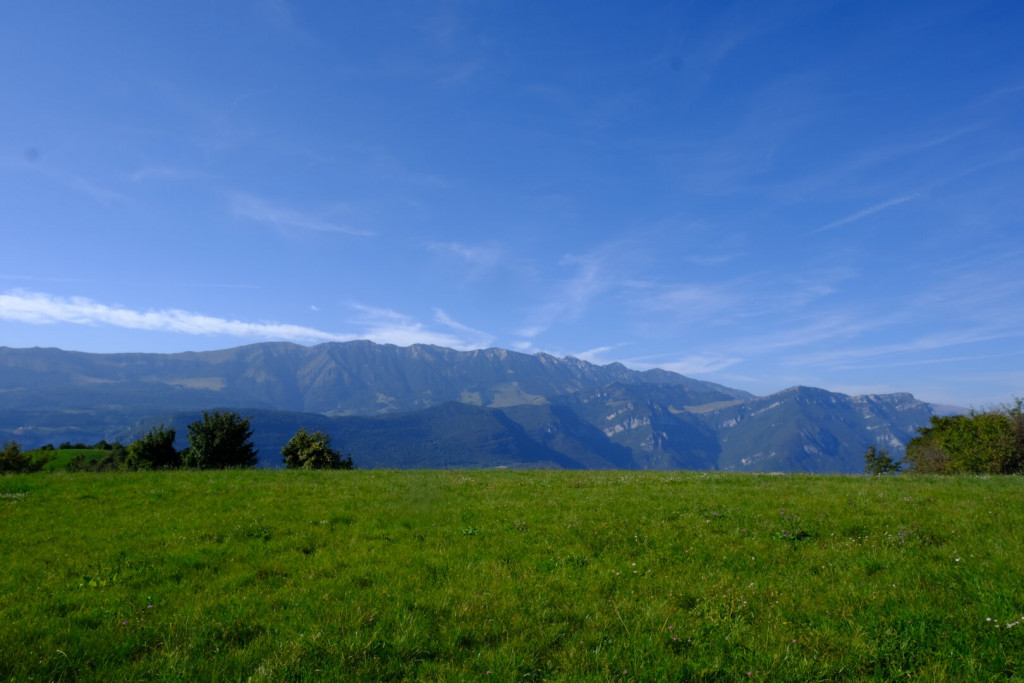 Anche se appartiene a un altro paesaggio, il Monte Baldo diventa una presenza costante lungo il nostro cammino. Sempre riconoscibile in lontananza, accompagna lo sguardo tappa dopo tappa, come un punto di riferimento discreto ma familiare. È una montagna “altra”, ma partecipe: silenziosa, solida, complice.