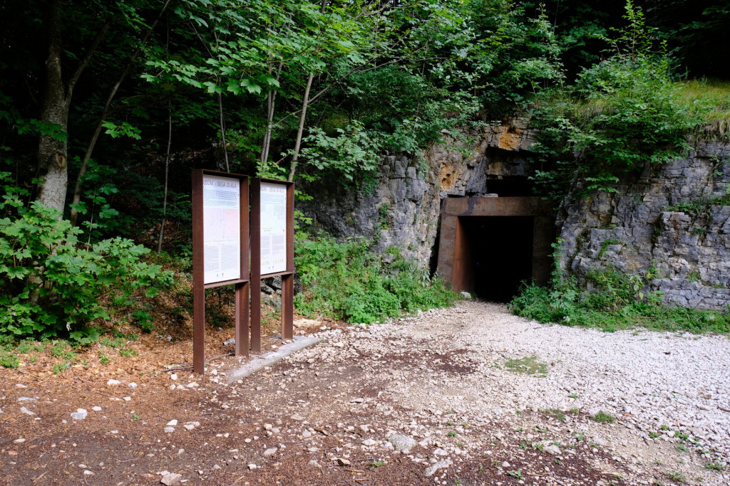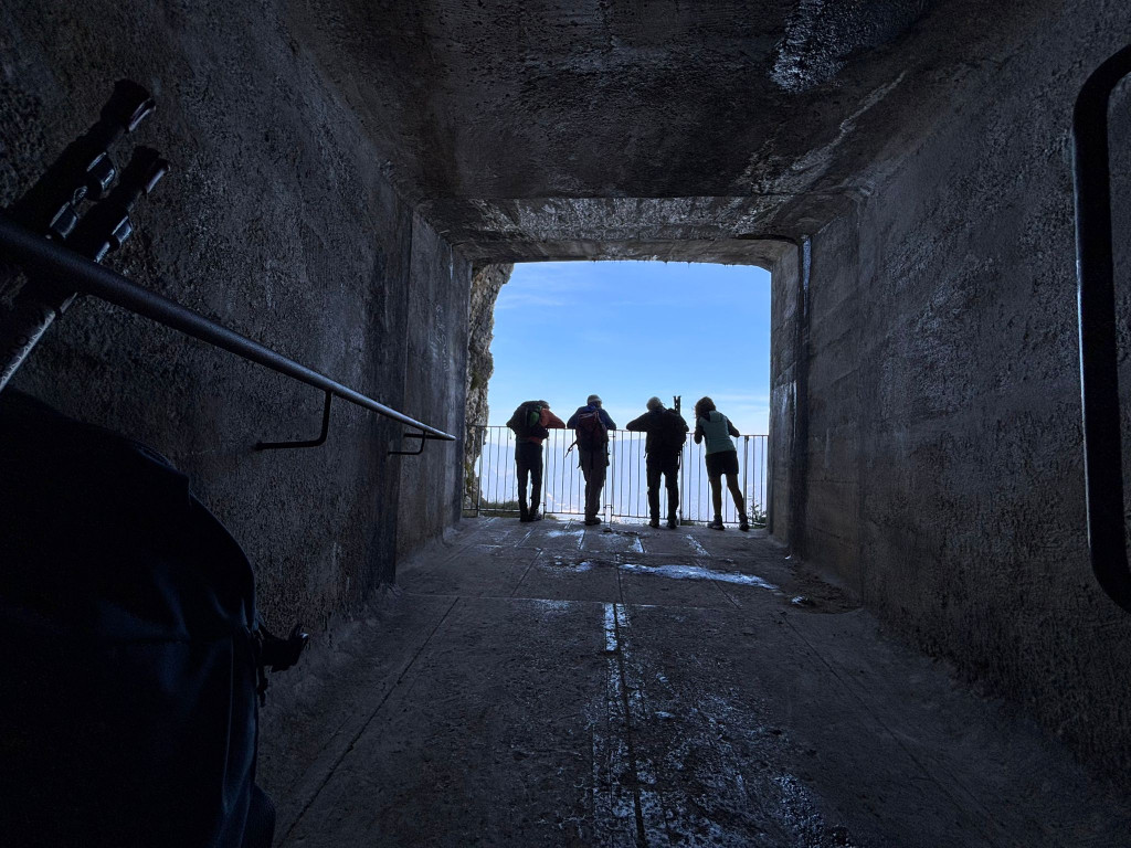 La galleria attraversa la montagna per oltre 300 metri, in leggera discesa, fino a sbucare su una balconata naturale che si affaccia con un colpo d’occhio spettacolare sulla Vallagarina. All’interno si susseguono ambienti scavati a mano nella roccia, con vani laterali, nicchie, feritoie e una piccola stanza finale, da cui una scaletta conduce a una terrazza panoramica in roccia viva.