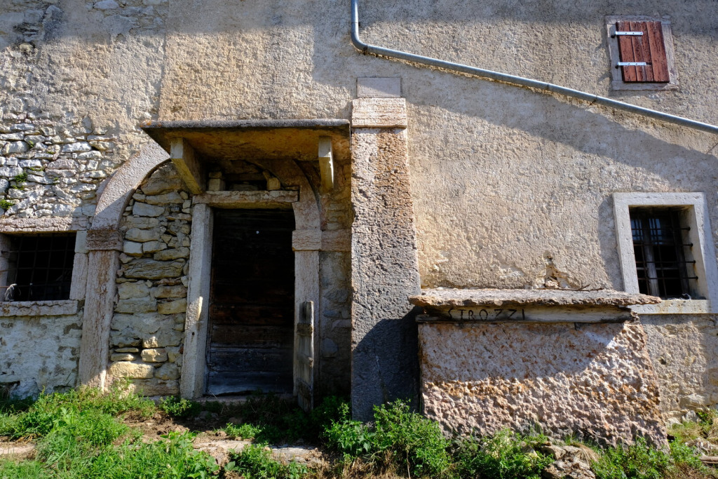 Si scende poi per meno di un chilometro e si svolta a sinistra sul sentiero CAI 250, che si sviluppa a mezza costa su terreno aperto fino a raggiungere il crinale entrando nel Comune di Bosco Chiesanuova. Lo si segue fino all’imbocco della strada militare che scende al Rifugio Podestaria (1665 m), un’ex caserma con ampio cortile interno e una piccola chiesetta.